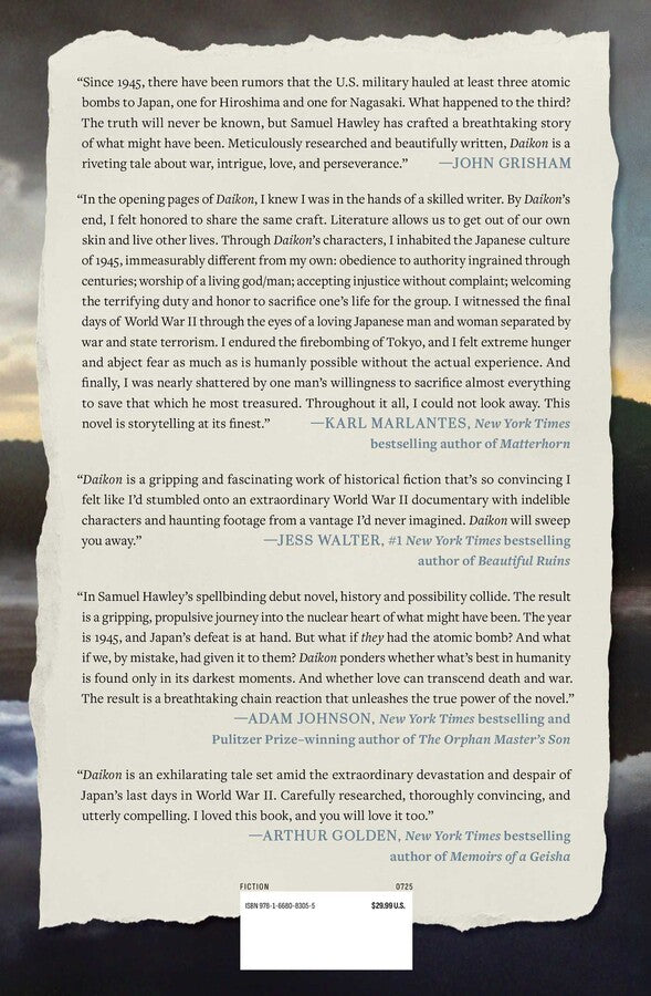 A sweeping and suspenseful novel of love and war, set in Japan during the final days of World War II, with a shocking historical premise: three atomic bombs were actually delivered to the Pacific—not two—and when one of them falls into the hands of the Japanese, the fate of a couple that has been separated from one another becomes entangled with the fate of this terrifying new device.