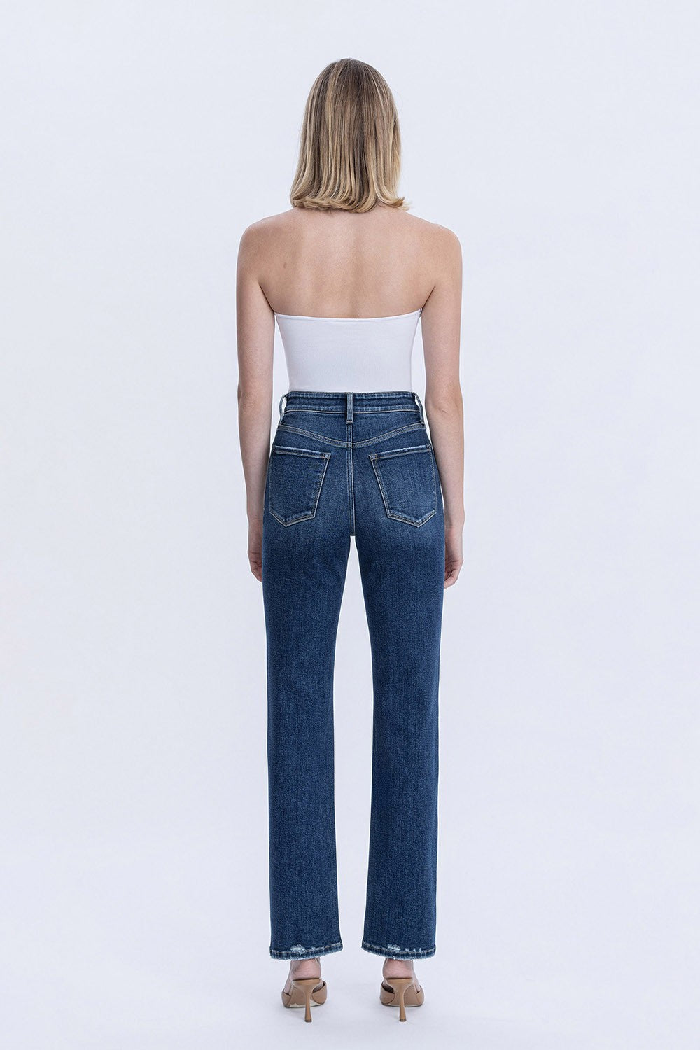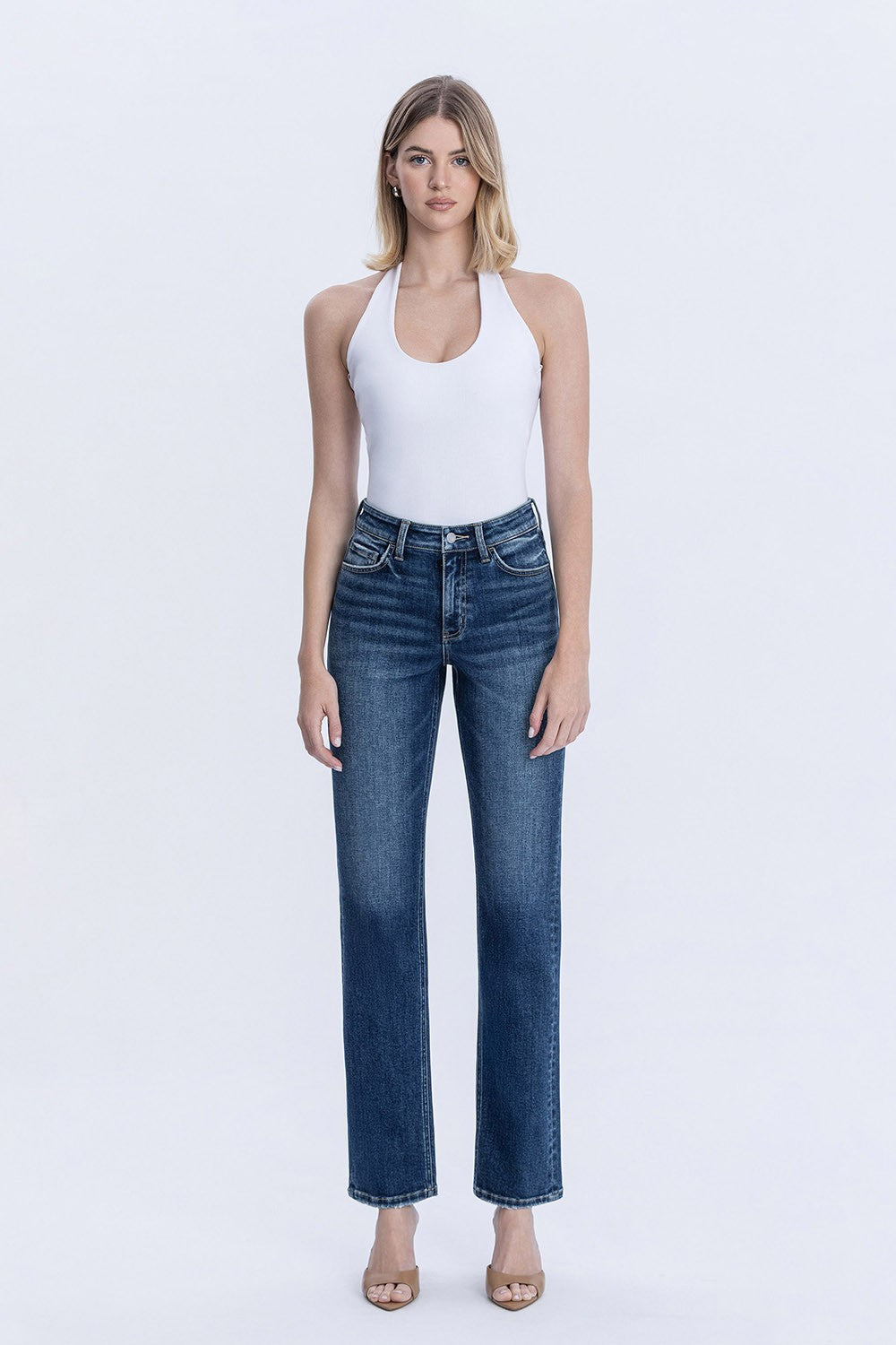 HIGH RISE FULL LENGTH DARK WASH STRAIGHT JEANS