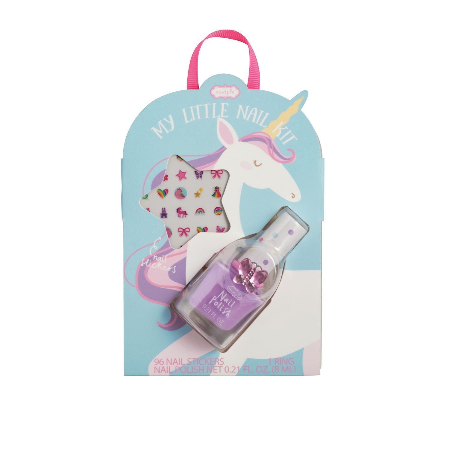 3-piece set. Water based nail polish comes with dress-up ring and two sheets of nail stickers. Ages 3+.