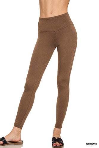 Brown Brushed Microfiber Full Length Leggings