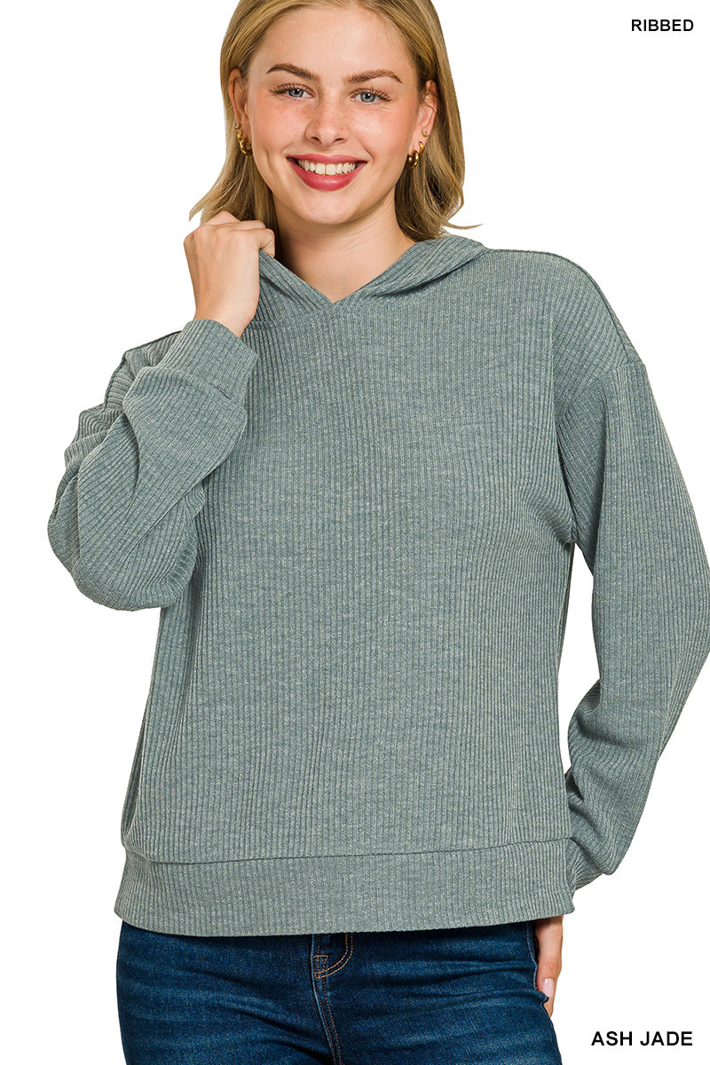 • Load image into Gallery viewer, Ash Jade Ribbed Hoodie Pullover
