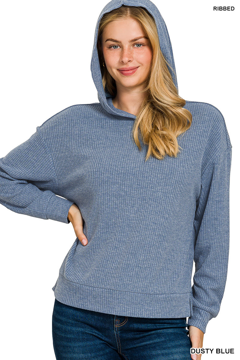 • Load image into Gallery viewer, Dusty Blue Ribbed Hoodie Pullover