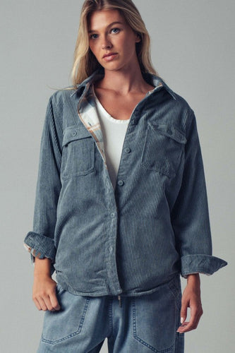 Blue Stone Corduroy And Plaid Flannel Shacket