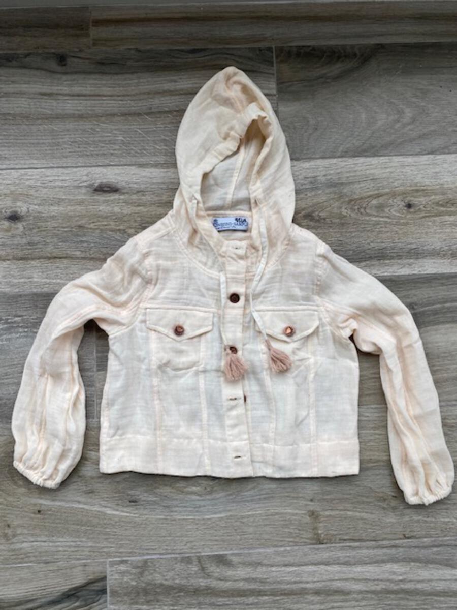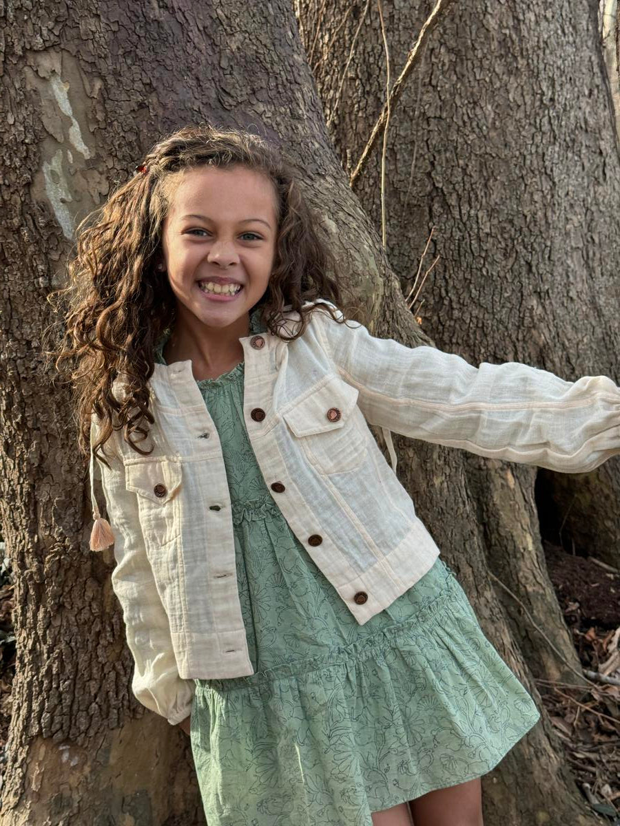 A style staple - this jean style jacket in gauze with metal buttons is a wardrobe essential.